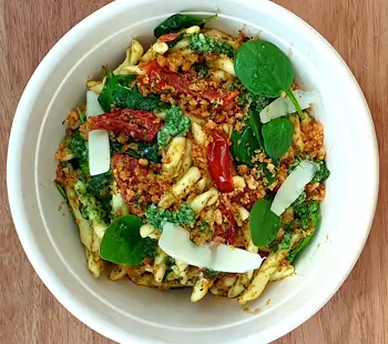 Basil pesto, smoked tomatoes and fresh pasta - what more could you want?