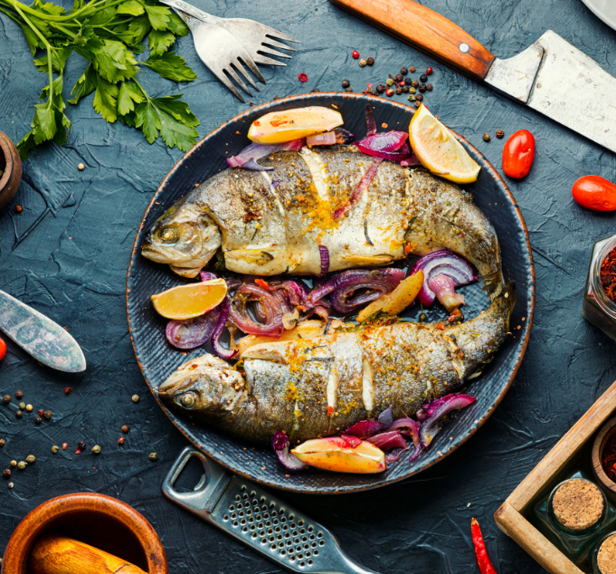 - Remove from the oven, squeeze the juice of the lemon over the trout and rest for 5 minutes before serving.