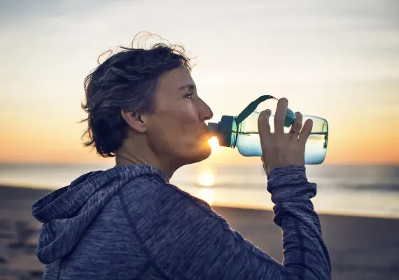 功能:水分在日常飲食中同樣重要。人體中含有 50-60% 的水(取決於體內脂肪的水平),它在保持我們的體溫、清除廢棄物和傳送營養素方面起著重要的功能性作用。水最好,但淡茶、咖啡和稀釋的水果飲料也都很好。儘量限制碳酸飲料和高糖飲料(如不含酒精的飲料、果汁、加糖飲料)的攝入。